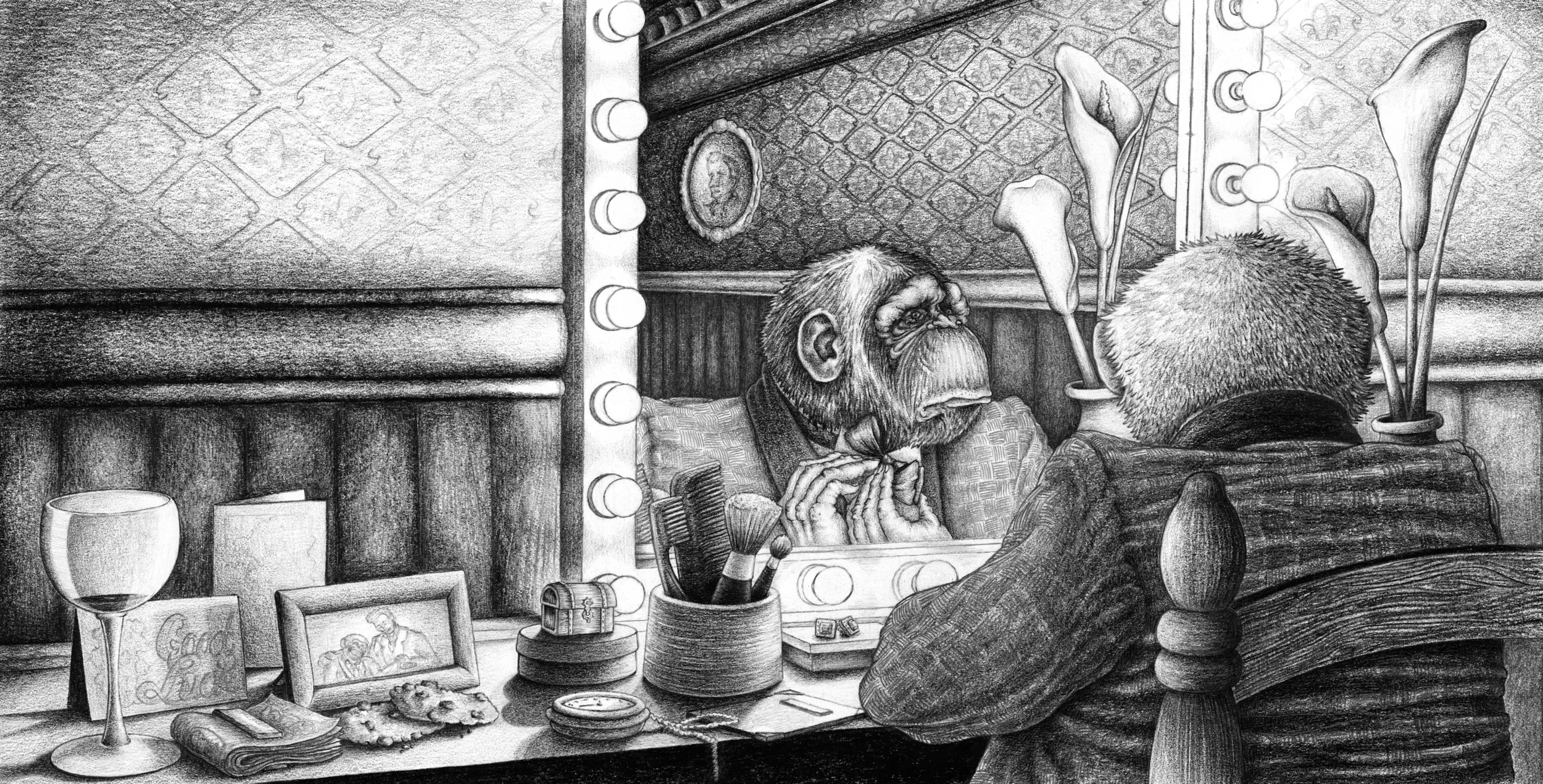 illustrating A report to an academy by franz kafka, pencil on paper, 2013 [8” x 17”]