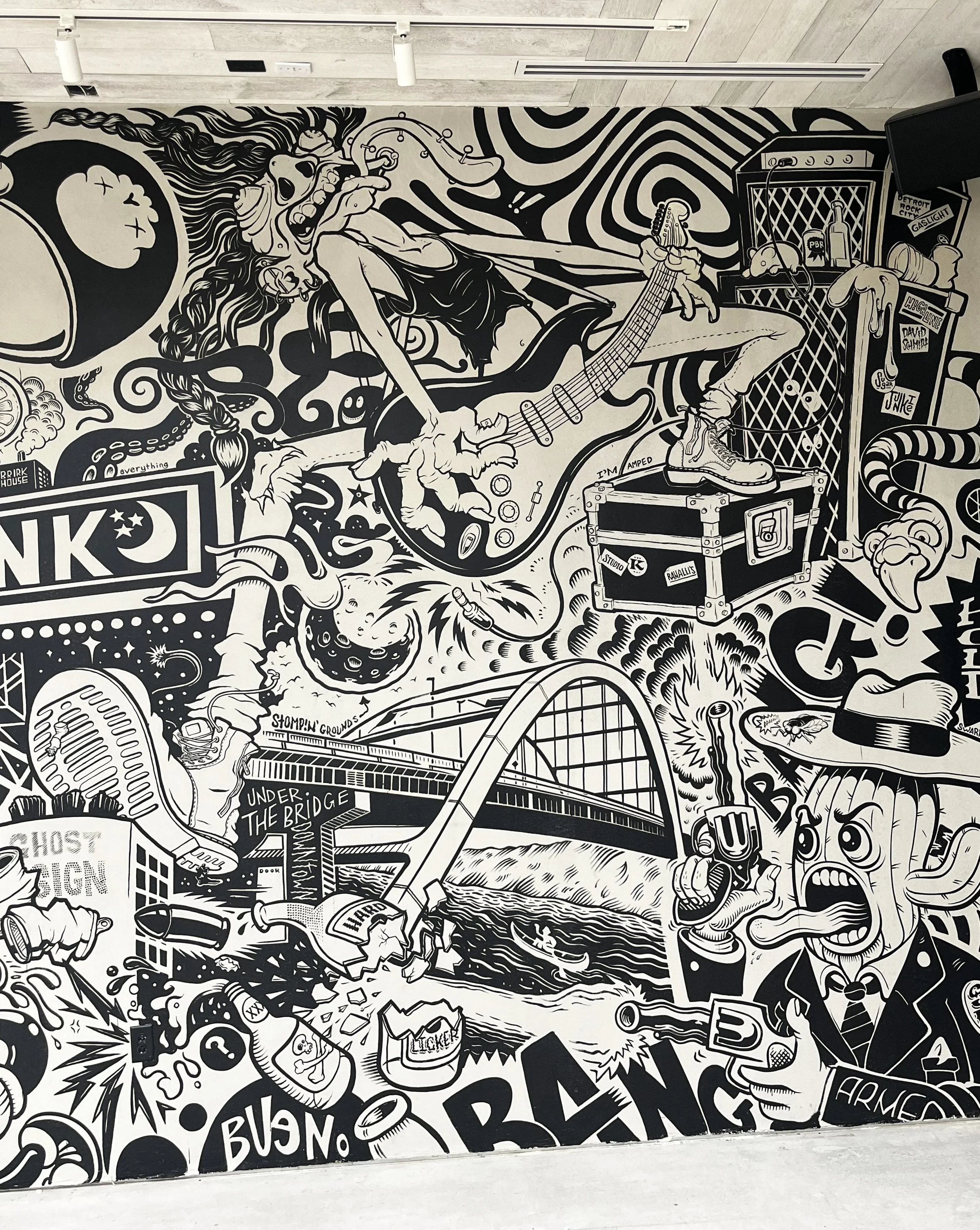 mural collaboration with en masse for federales restaurant in nashville, paint on bigass wall, 2025